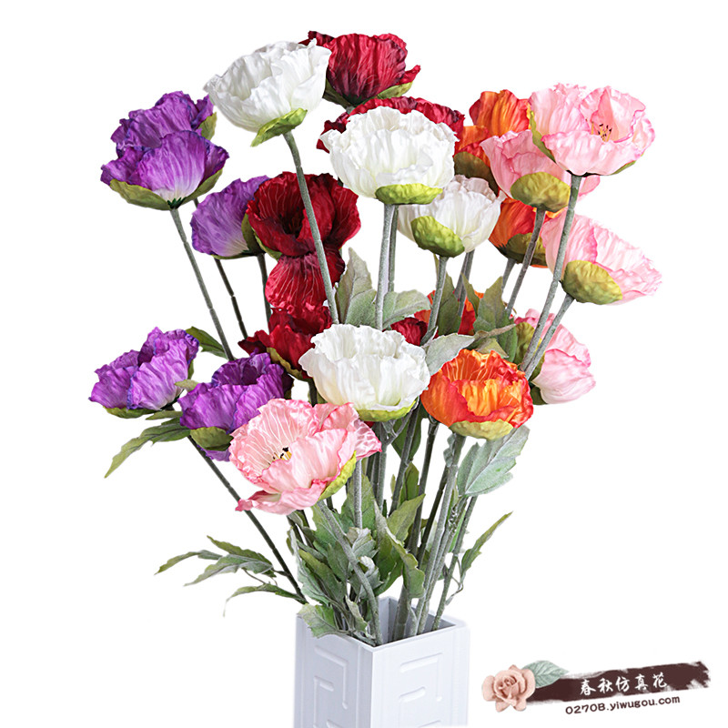 仿真五头植毛罂粟花 家居装饰仿真花