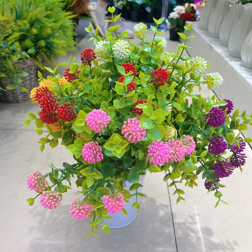 田园塑料仿真花7叉水草批发 尤加利家居室外栅栏装饰花仿真植物