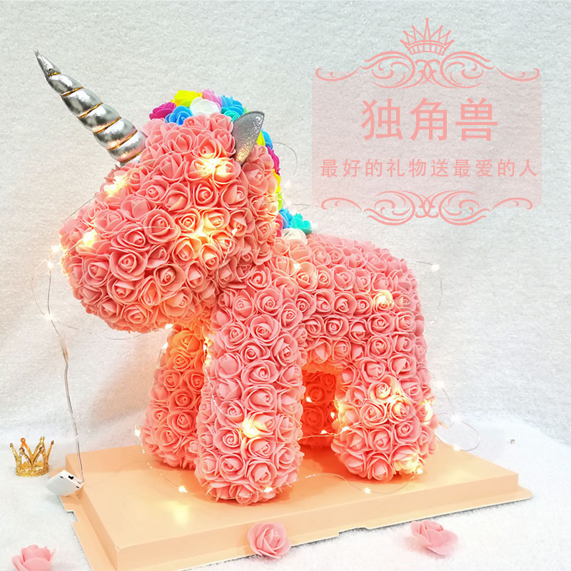 网红泡沫永生花独角兽仿真玫瑰花摆件情人节圣诞礼品玫瑰花泡沫熊