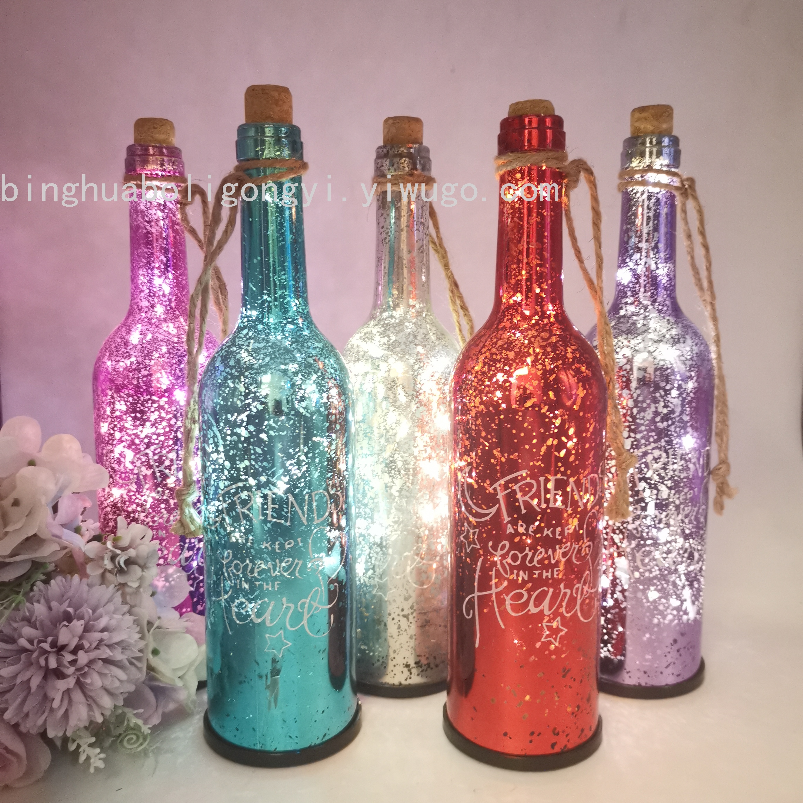 玻璃瓶创意发光红酒瓶LED灯串悬挂提绳幸运星星瓶许愿瓶 装饰工艺