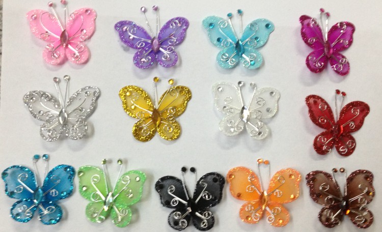 手工仿真丝袜亮粉镶钻蝴蝶 饰品配件 多色低价