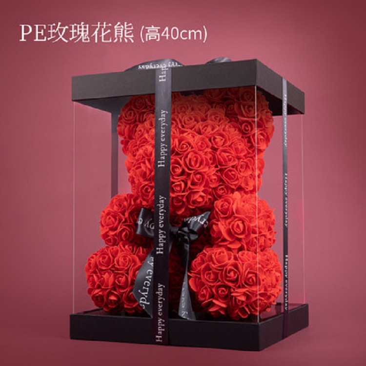 永生花玫瑰熊圣诞情人节礼物PE泡沫花熊创意抱抱玫瑰花熊实力厂家