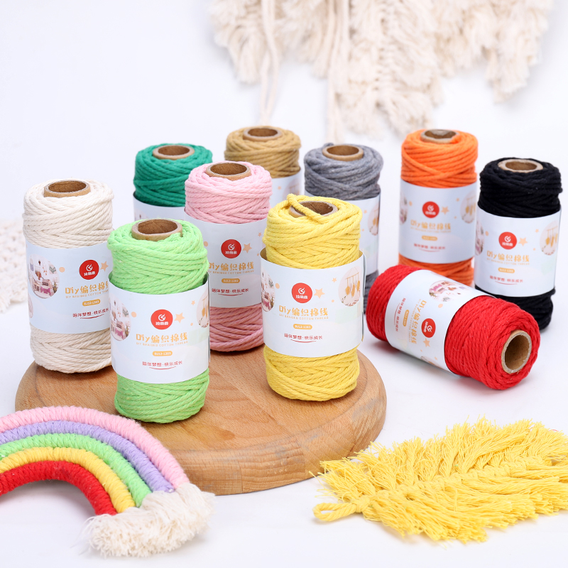 厂家直销 3mm4股彩色棉线绳diy手工绳子编织波西米亚挂毯线粗细