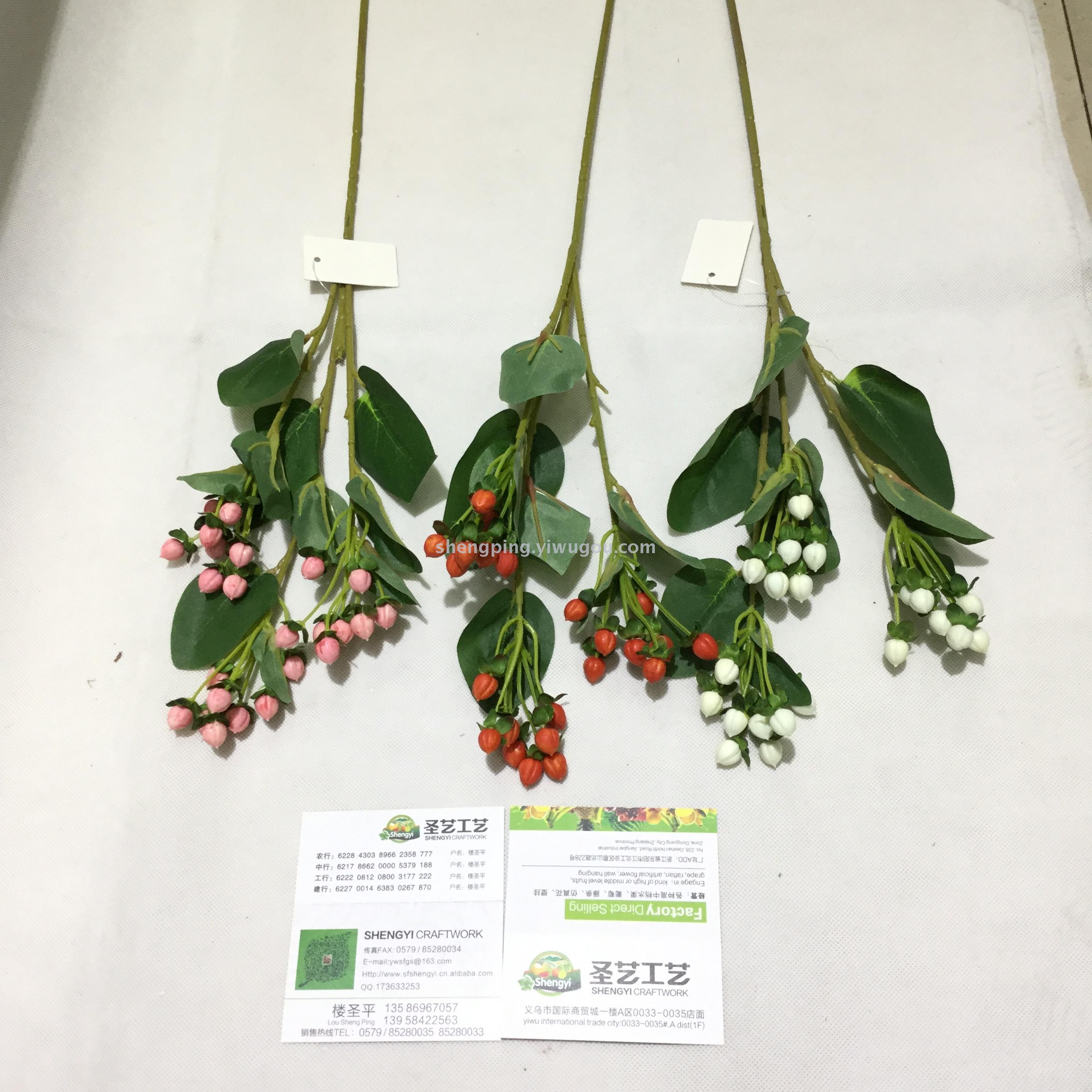 高档仿真花 新款 3叉粉豆居家婚庆装饰假花绢花金丝桃果