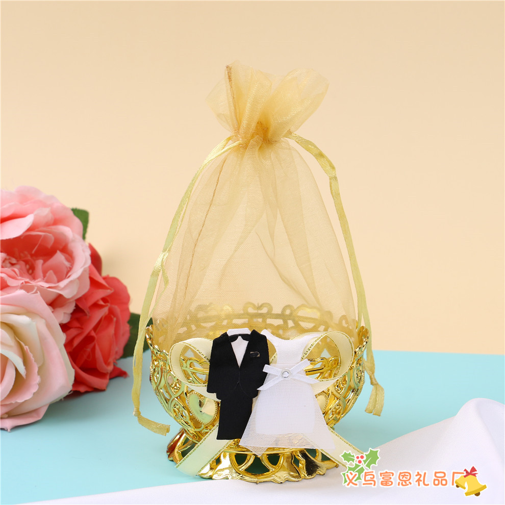 创意欧式喜糖盒塑料底座纱袋金色婚庆装饰糖果盒子
