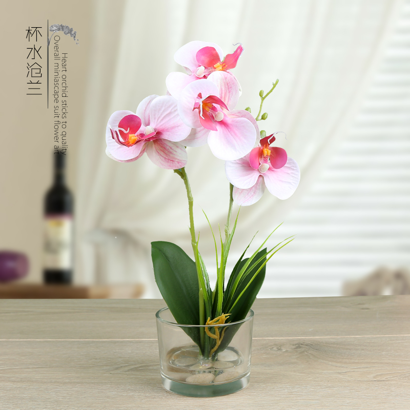 餐桌花艺摆件 仿真花蝴蝶兰盆景装饰 桌面摆设假花盆栽