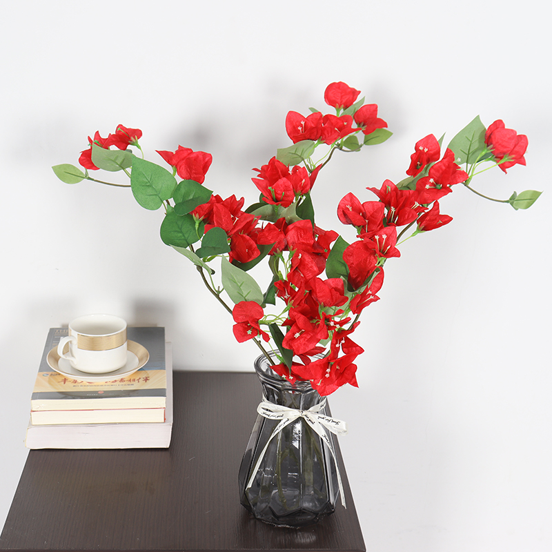 简约风时尚室内婚庆公司插花装饰假花盆栽仿真勒杜鹃三角玫单枝花
