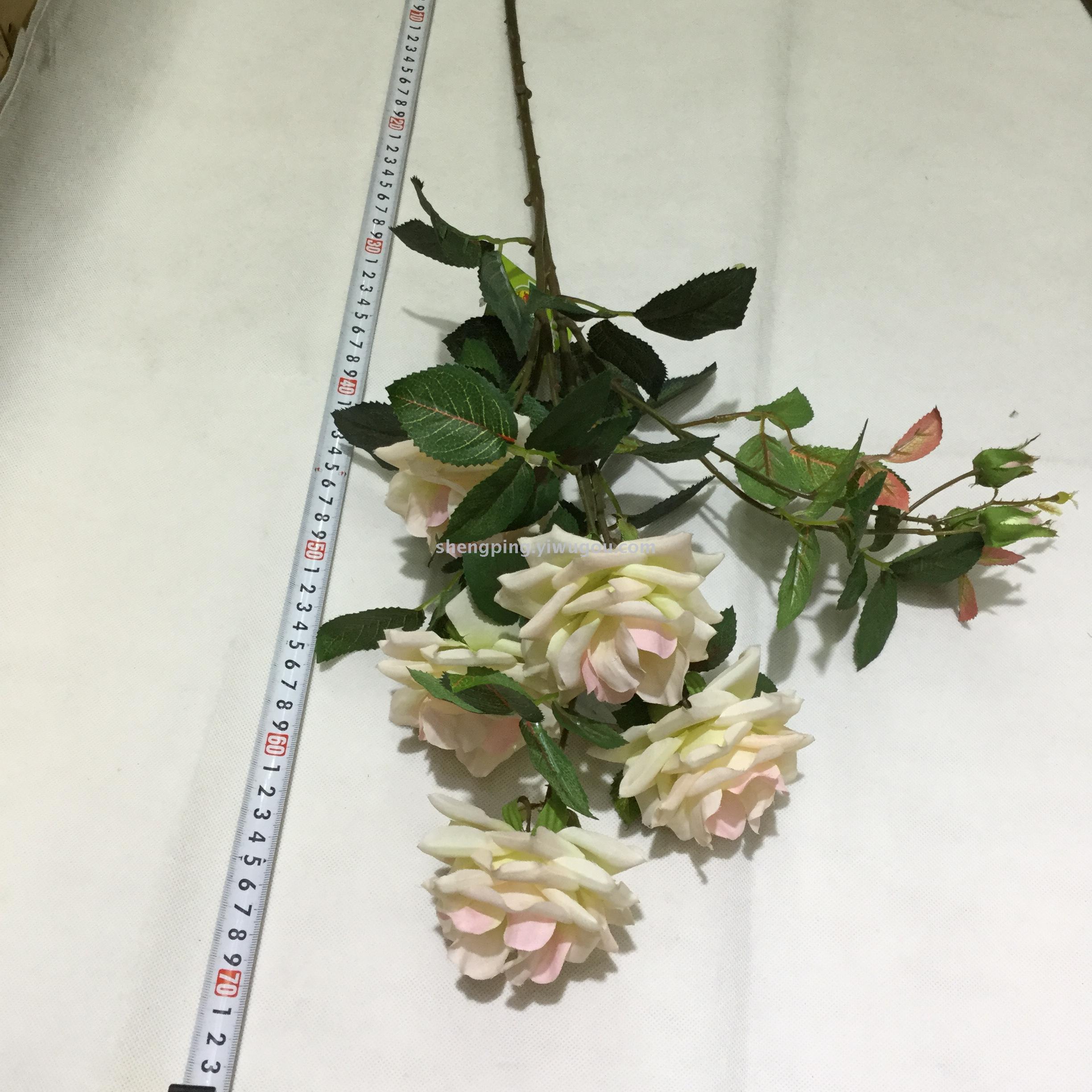 仿真花单支玫瑰5头卷边玫仿真月季花居家软装婚庆装饰假花批发