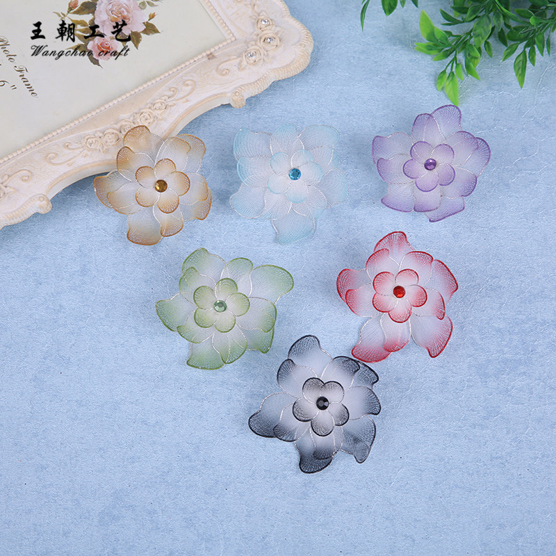 供应6cm三层花仿真渐变色花手工饰品配件装饰道具来样定做批发