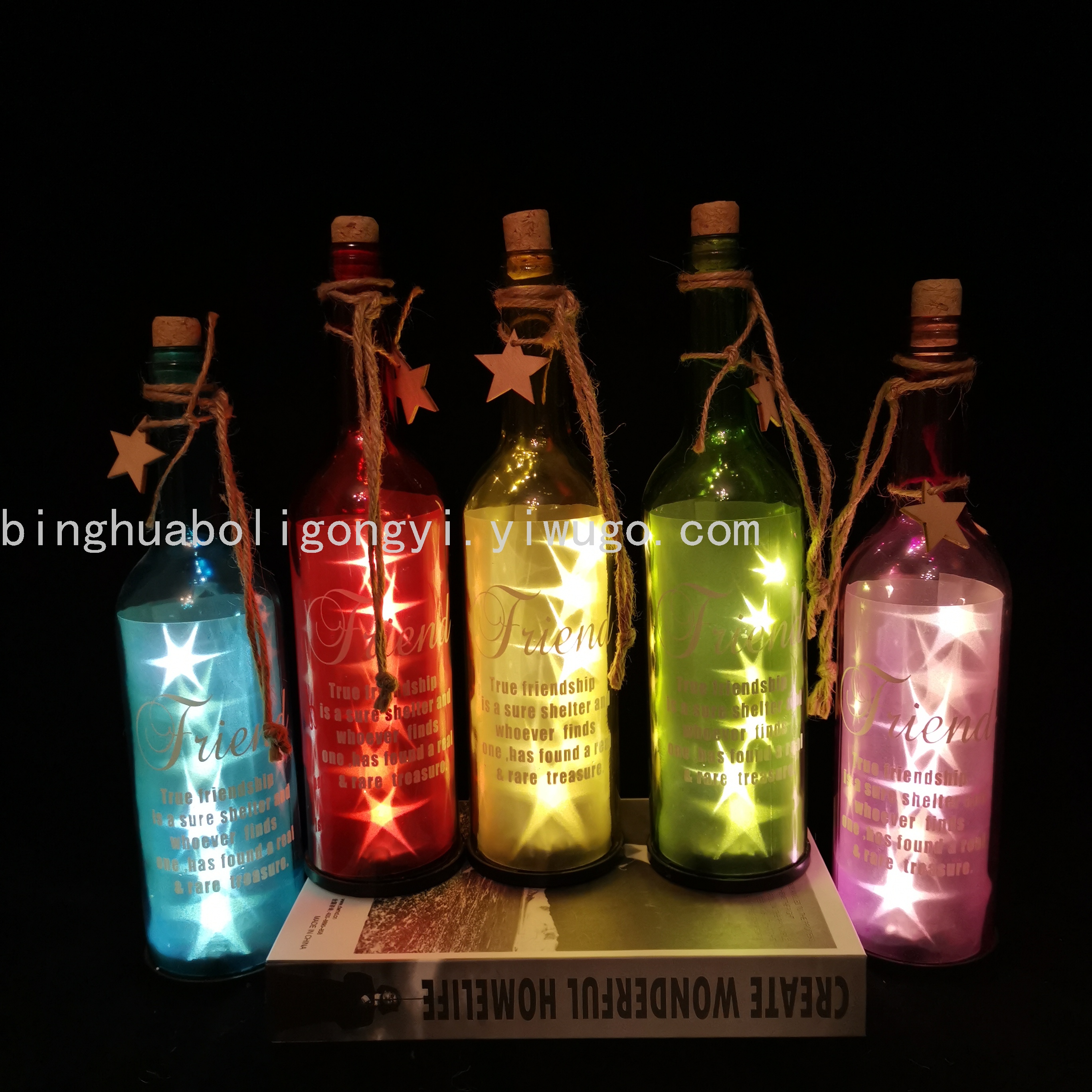 玻璃瓶创意发光红酒瓶LED灯串悬挂提绳幸运星星瓶许愿瓶 装饰工艺
