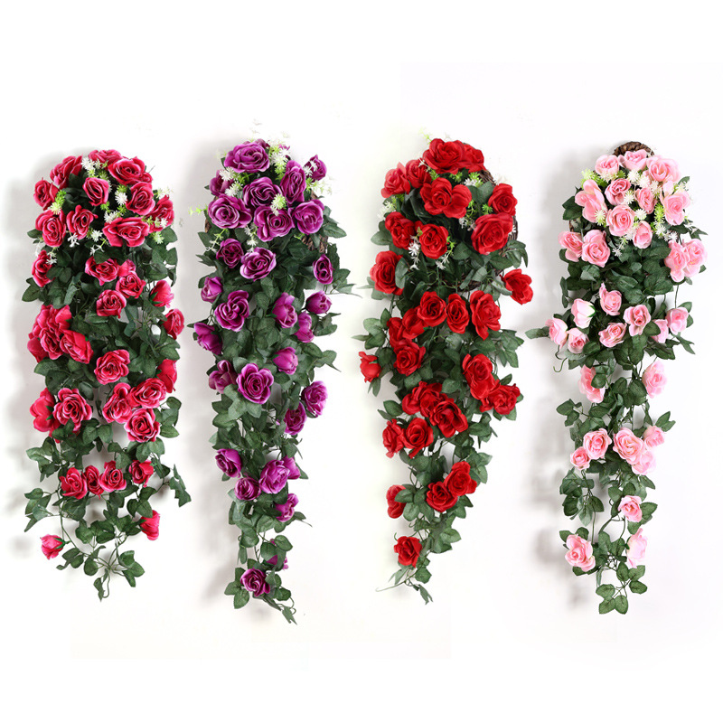 假花藤条仿真花藤装饰壁挂仿真玫瑰花家居装饰花壁挂墙壁挂花批发