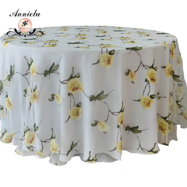 时尚热销欧根纱印花桌布台布 简约风格酒店婚庆装饰桌布布料椅套