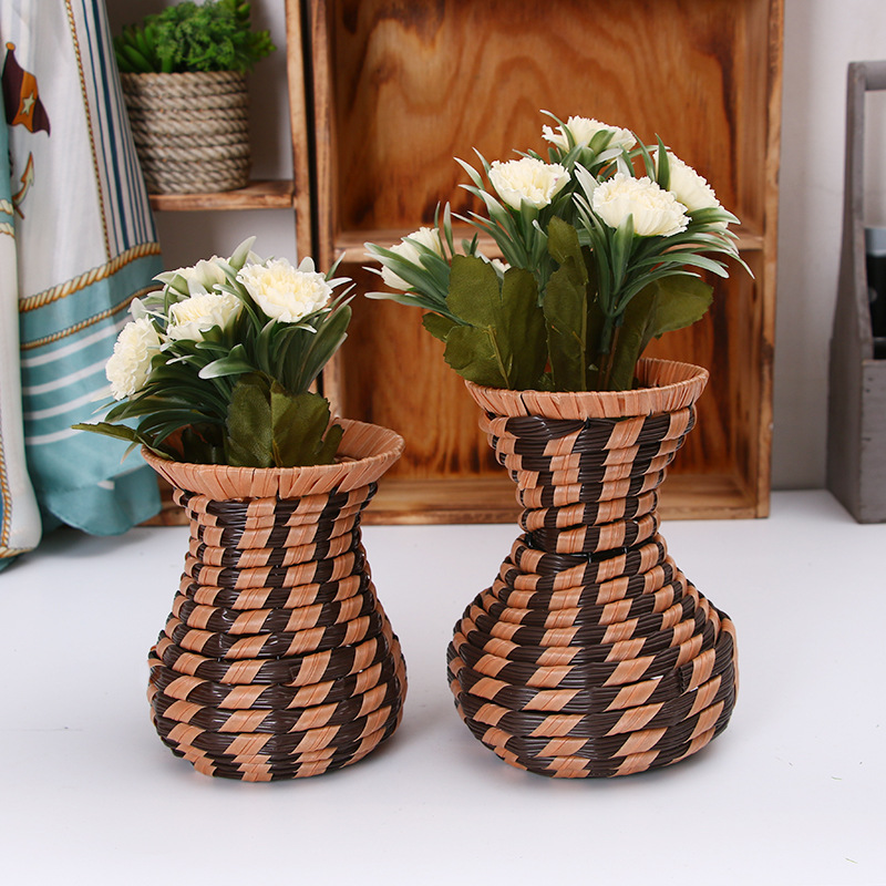 欧式铁艺藤编花篮手工编织仿真花瓶 家居装饰摆件工艺品批发