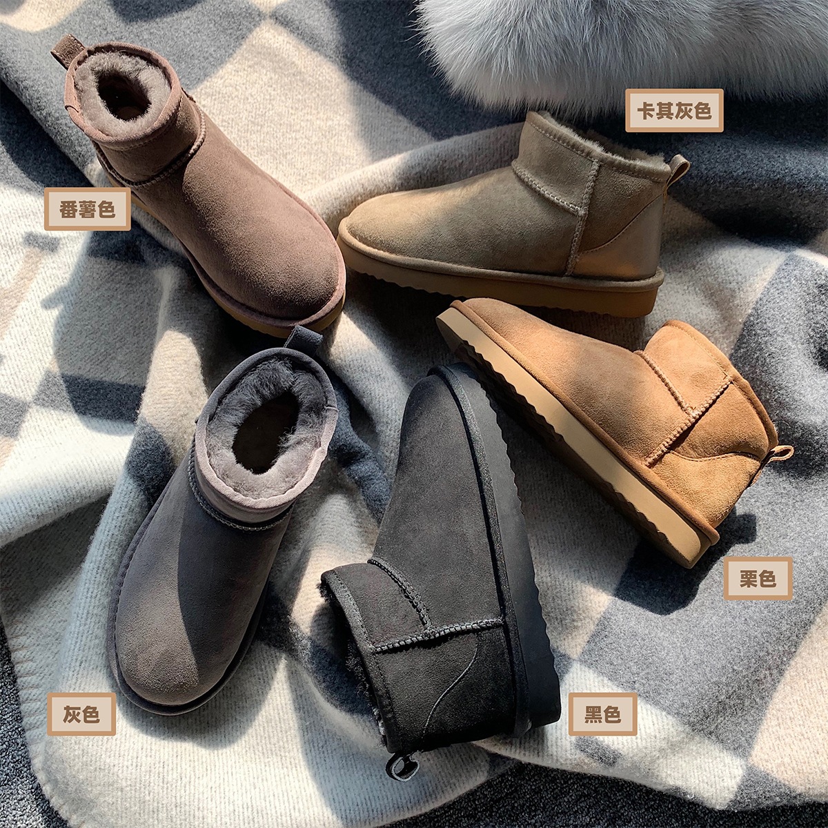 冬日小棉靴~2021冬季新款羊皮毛一体加绒加厚短筒真皮雪地靴女