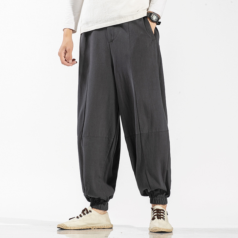 2021新款中国风男装亚麻裤长裤唐装阔腿裤盘扣大码休闲萝卜裤男