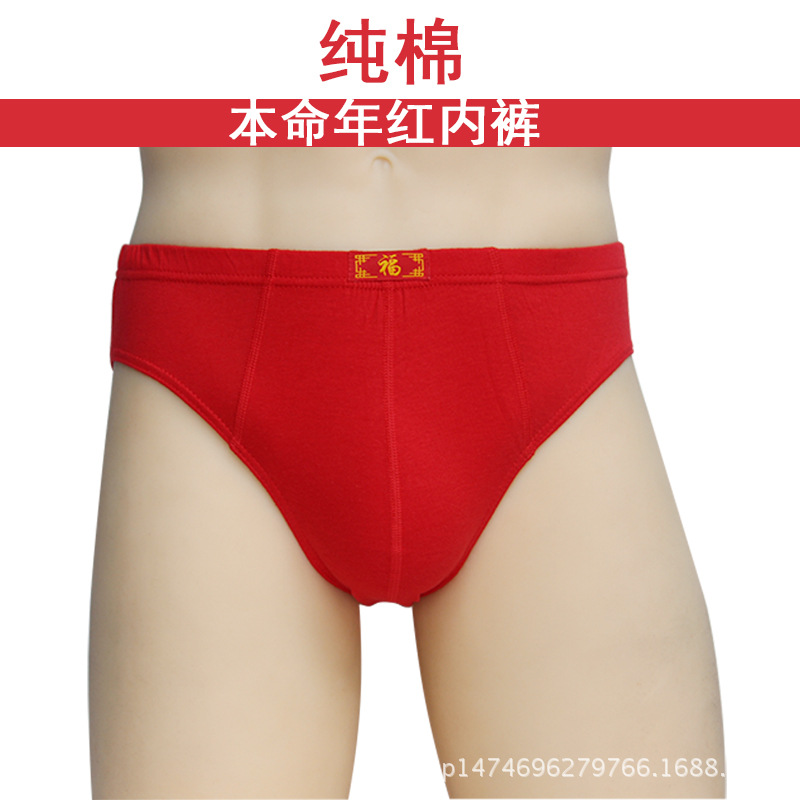 内裤福字厂价批发中国红色三角纯棉中腰肥佬底裤多码数本命年男士