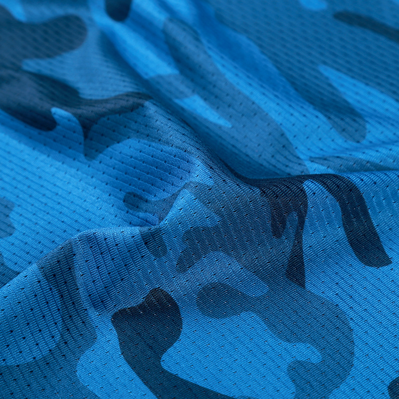 现货吸湿排汗T恤面料 迷彩网眼布针织面料 速干透气休闲服布料