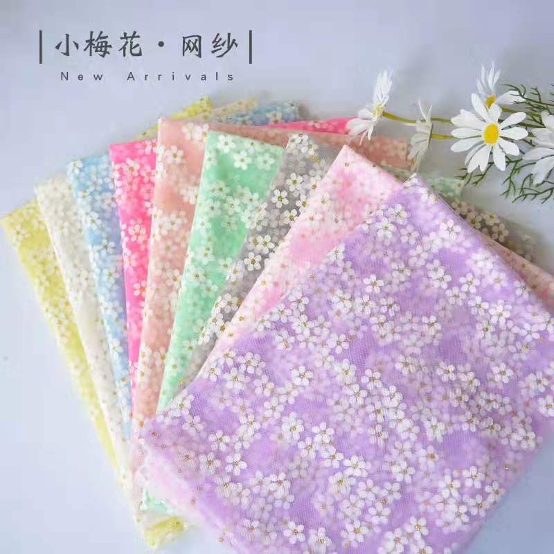 印花网纱ins服装蕾丝纱加密网眼纱女生儿童拍照背景布diy手工布料