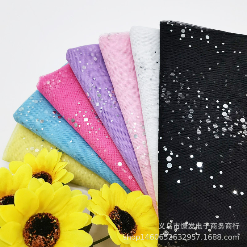 银河亮片点网纱面料流星网眼纱连衣裙蓬蓬裙服装面料手工diy 布料