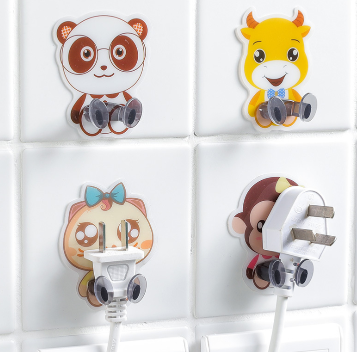卡通电源线收纳挂架 创意插头强力粘钩 动物插座挂钩插头整理支架