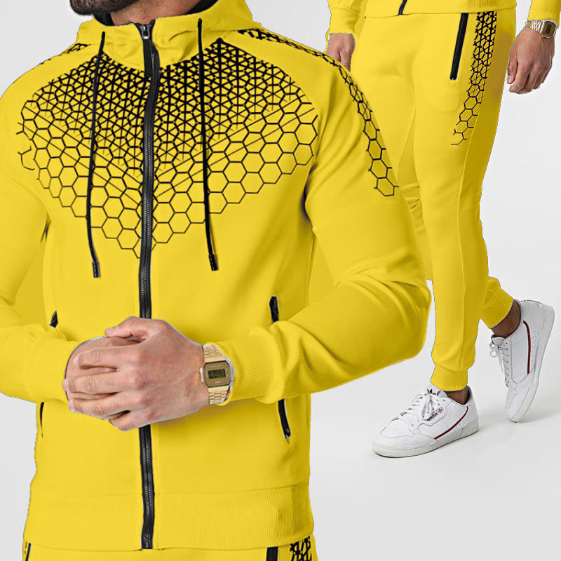 2021新款春秋季运动服男士连帽外套电子蜂巢印花休闲卫衣长裤套装