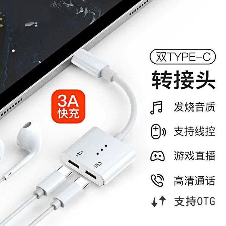 批发新款 type-c转双 type-c转换器支持通话听歌二合一手机转接头