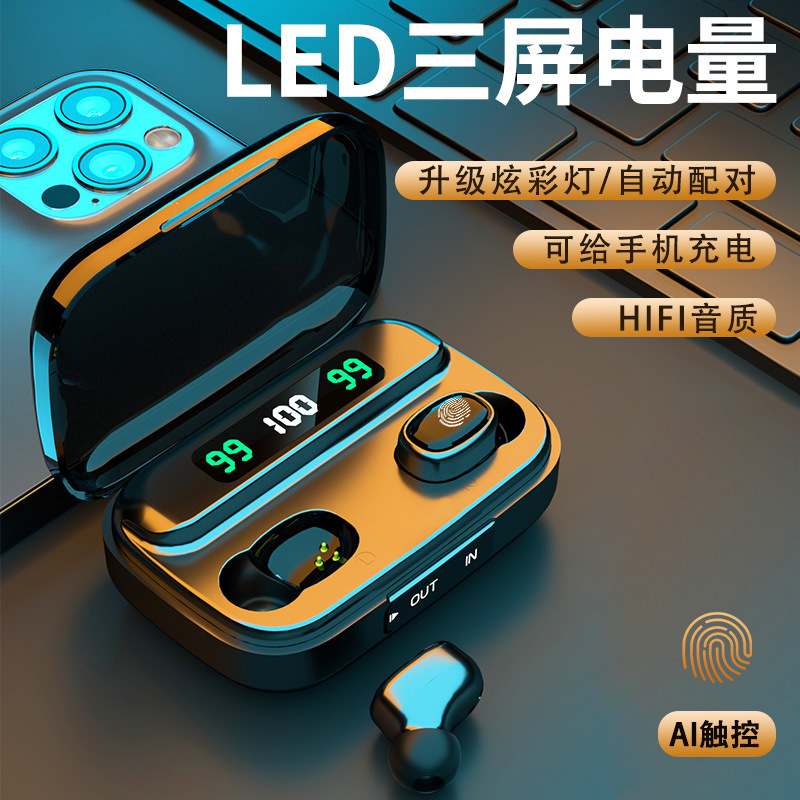 TWS-T3华强北双喇叭数显蓝牙耳机双耳模式触碰式跨境私模无线耳机