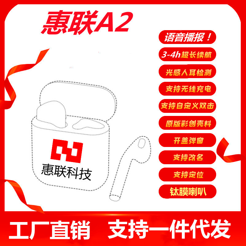 华强北二代惠联A2适用于苹果蓝牙耳机 黑科技彩创原壳无线TWS耳机