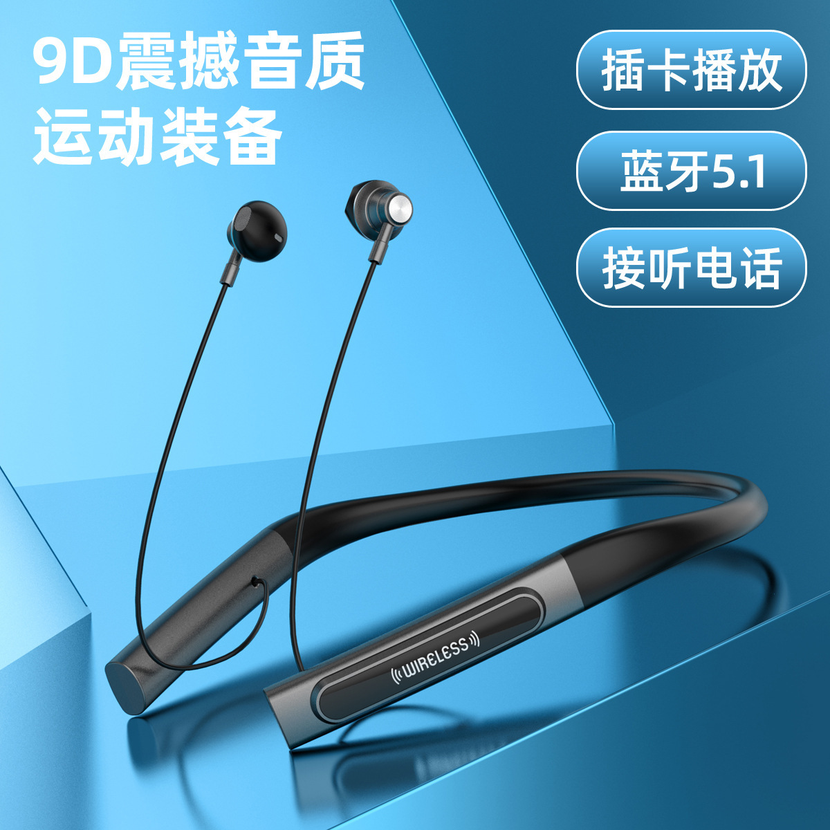 跨境爆款新款运动蓝牙耳机脖挂式插卡蓝牙5.1立体声适用苹果安卓