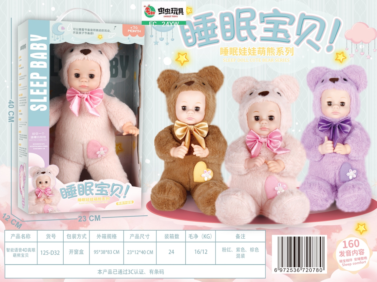 宝宝过家家仿真公仔娃娃玩偶摆件玩具智能语音4D真眼萌熊睡眠宝贝