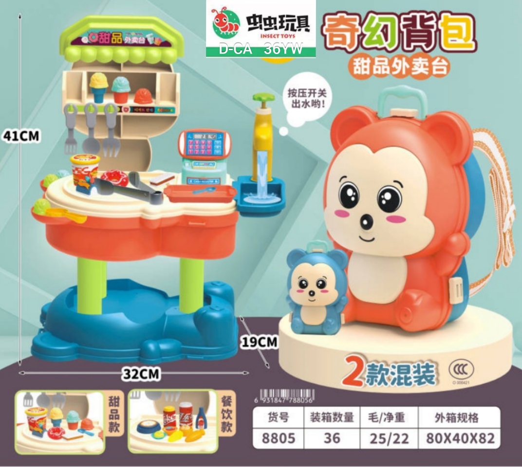儿童过家家甜品餐饮外卖台亲子互动按压出水雪糕饮料收纳卡通背包