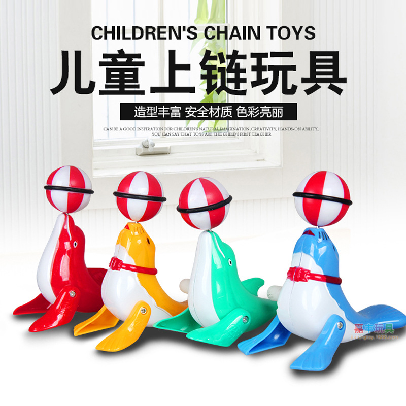 上链海豚360度地摊热卖海豚顶球发条卡通玩具12盒