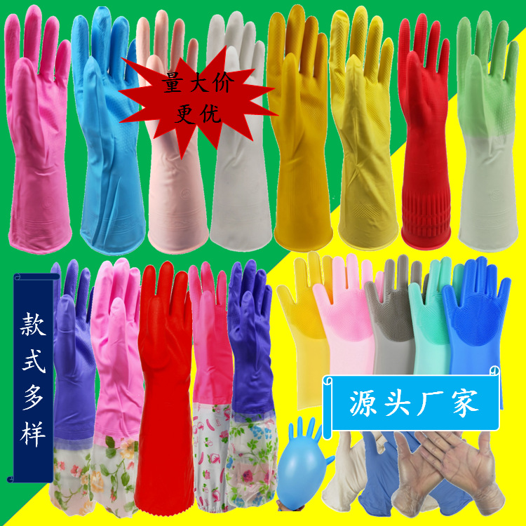 橡胶乳胶硅胶洗碗家务用洗衣服手套清洁防水厨房塑钢加绒牛筋手套