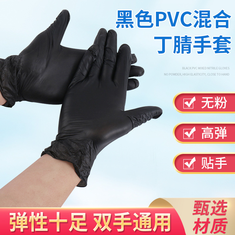一次性PVC复合加厚黑色劳保家务橡胶丁腈无粉触屏防护手套批发