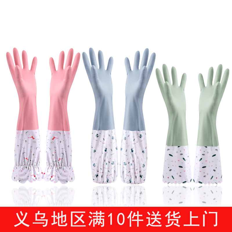 家务手套果冻色洗衣防水塑胶皮家用清洁橡胶防滑加绒厨房洗碗洗菜