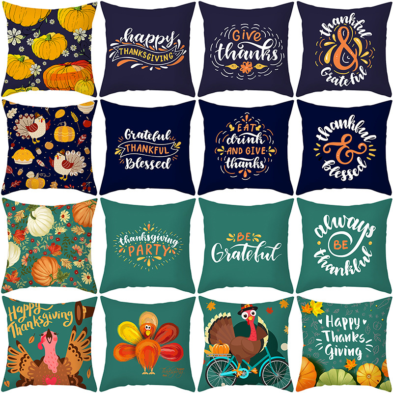 感恩节抱枕套2021wish新品卡通南瓜火鸡桃皮绒印花靠枕套沙发靠垫