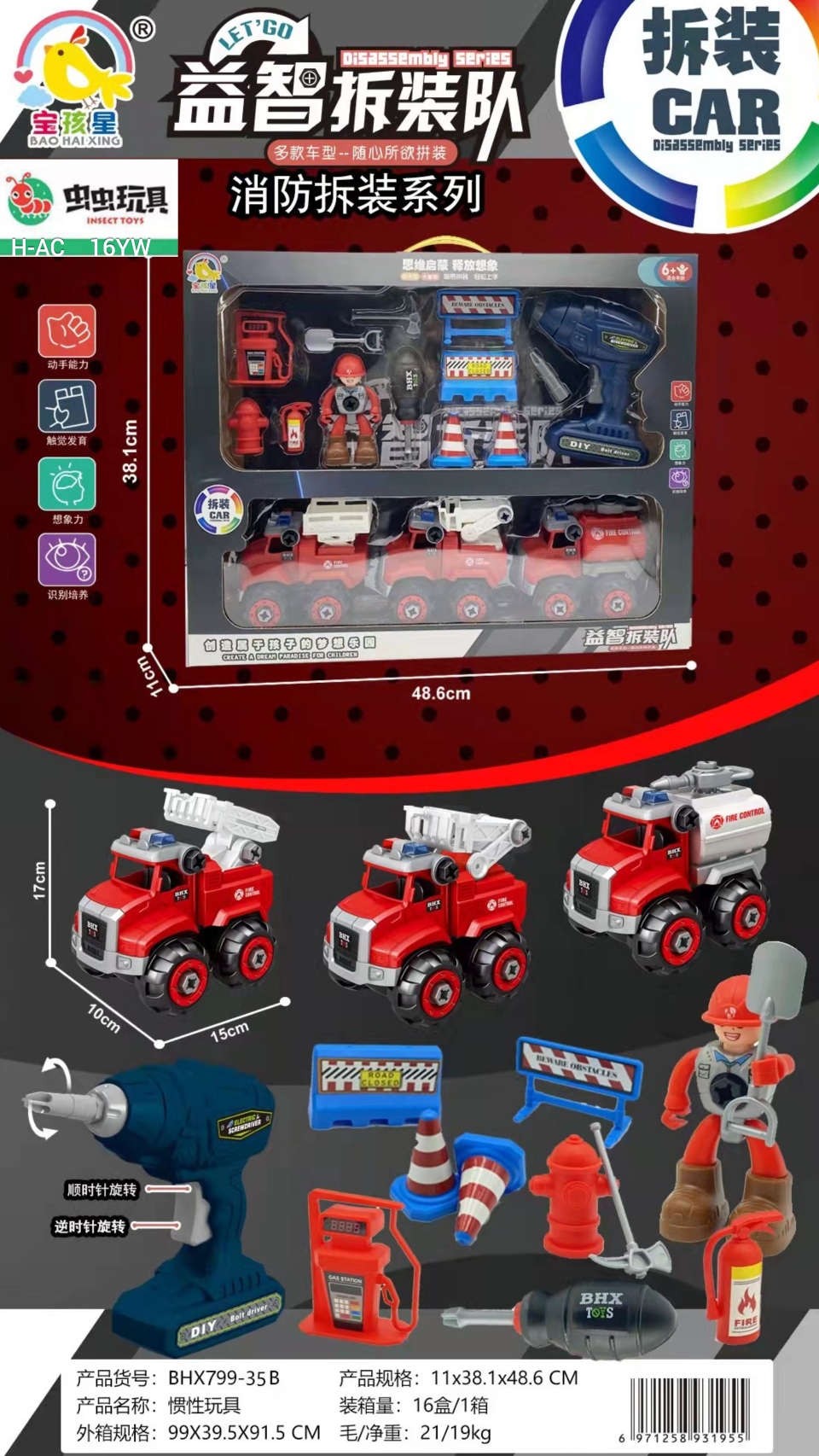 跨境爆款儿童diy拼装积木玩具车 益智拧螺丝拆装工程消防车玩具