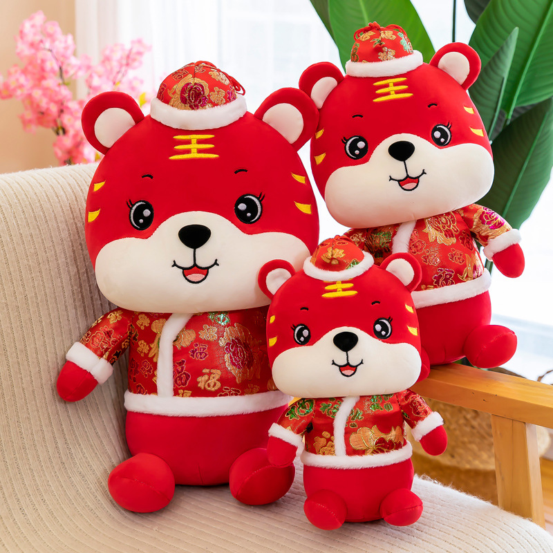 义乌购虎年吉祥物毛绒中国风节日礼品红色生肖印制logo老虎公仔