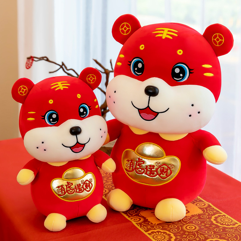 新款虎年生肖虎红色娃娃老虎毛绒玩具虎年吉祥物年会礼品虎年公仔