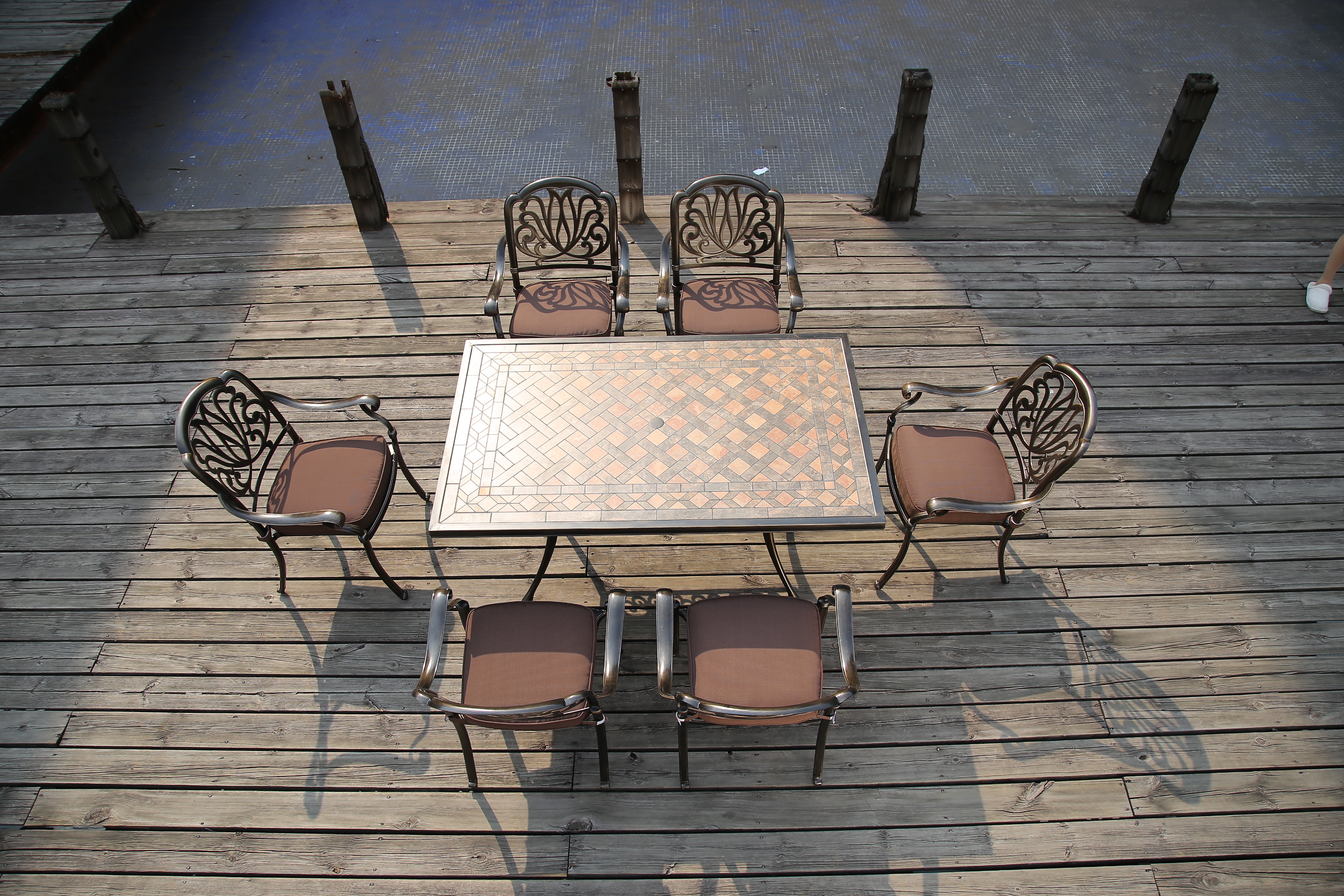 欧式风格户外铸铝椅大理石桌