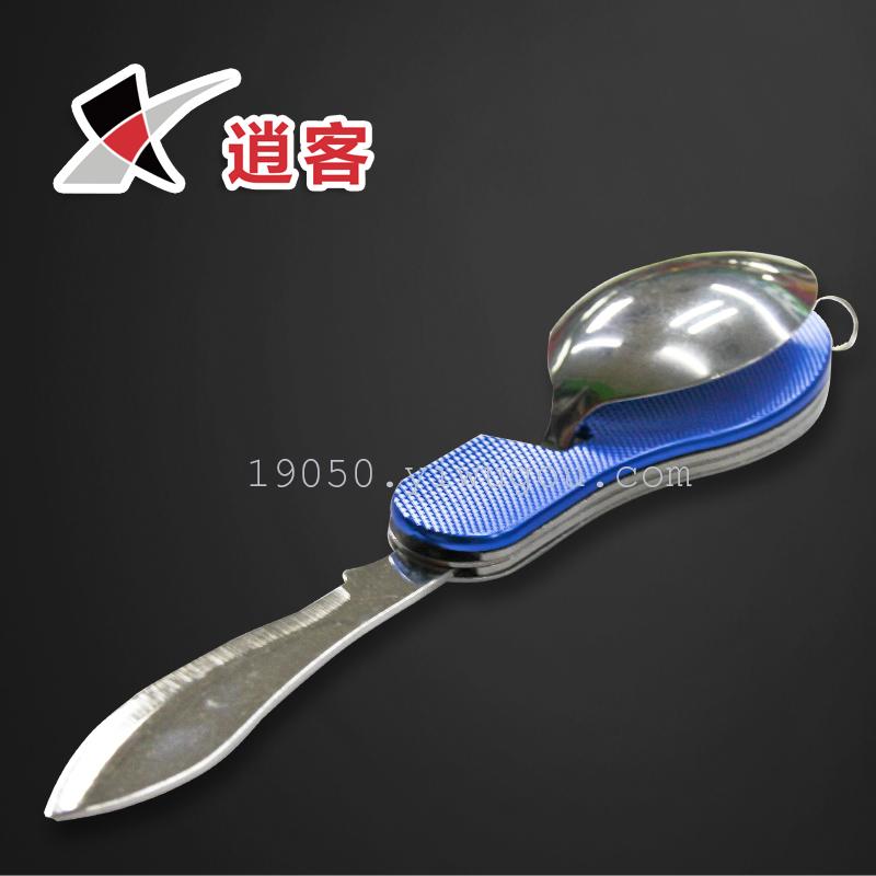 户外野炊四合一折叠餐具不锈钢野餐多功能餐具便携式刀叉勺开瓶器