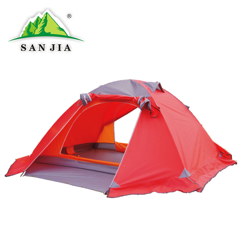 三佳高档双人双层双门铝杆户外露营帐篷防暴雨暴雪 防蚊 带裙边