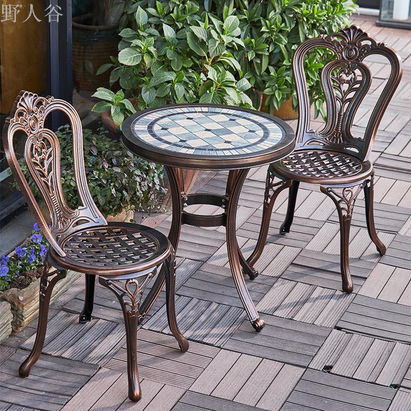 阳台小桌椅茶几三件套铸铝户外桌椅室外庭院休闲桌椅组合一桌两椅