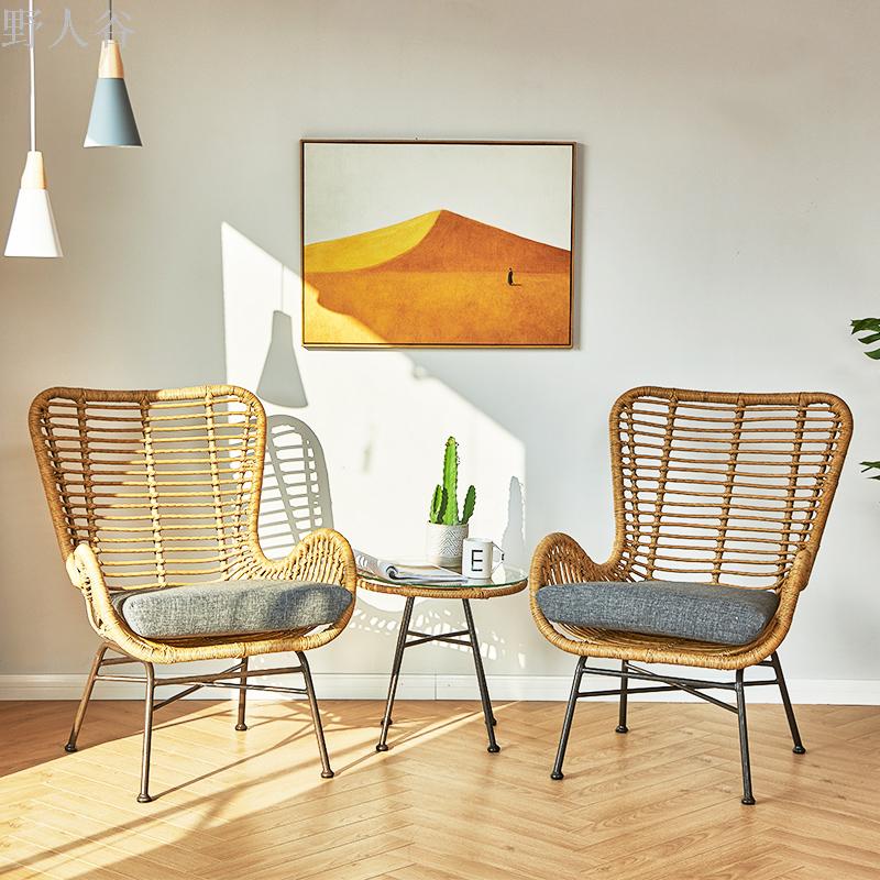 阳台桌椅三件套藤编休闲椅子小茶几组合创意户外庭院室外露台桌椅