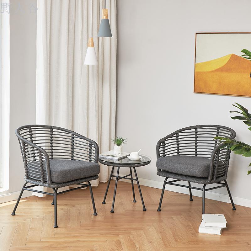 北欧阳台小桌椅藤椅茶几三件套入户花园一桌两椅家用休闲沙发组合