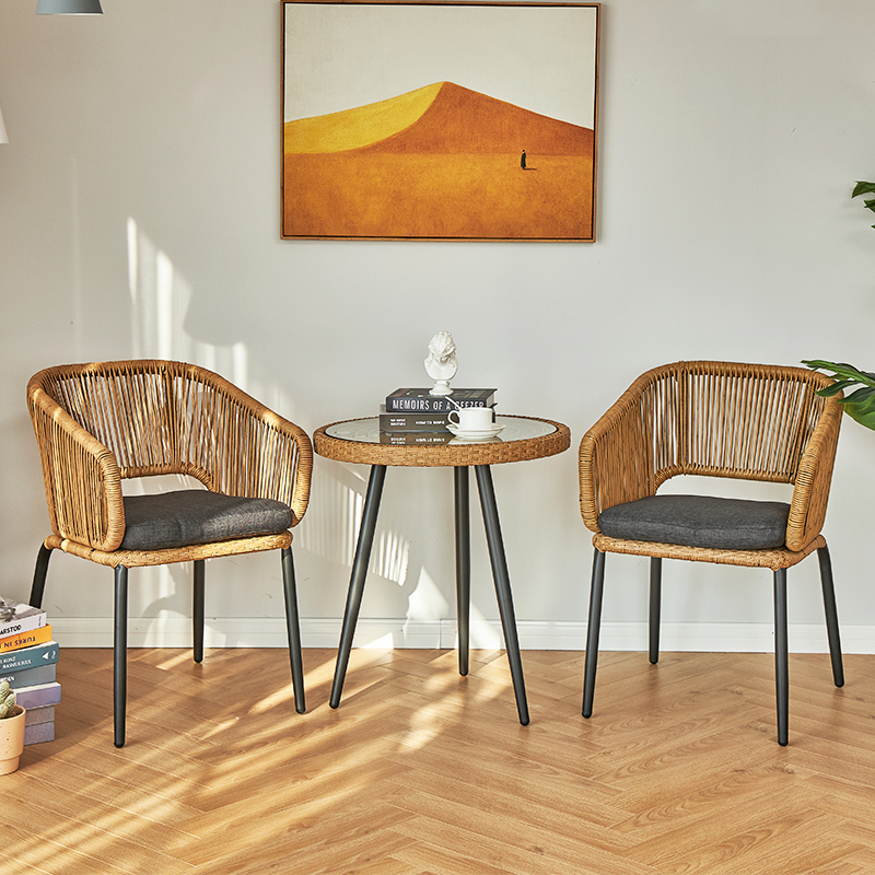 阳台小桌椅三件套藤编休闲椅子茶几网红户外花园庭院露台桌椅组合