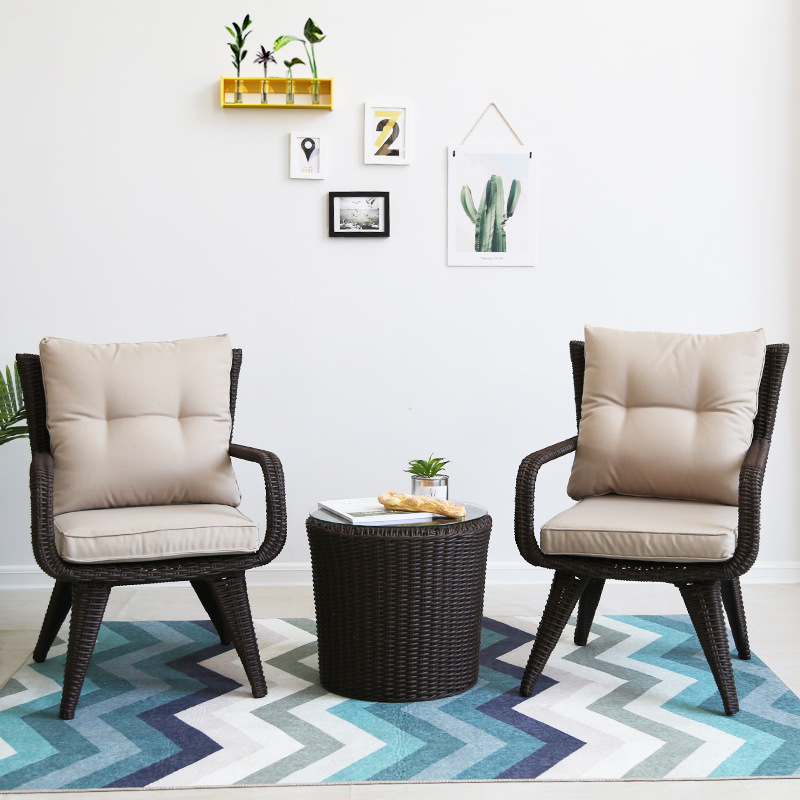 野人谷户外桌椅阳台庭院休闲藤椅三件套室外花园露台小茶几组合