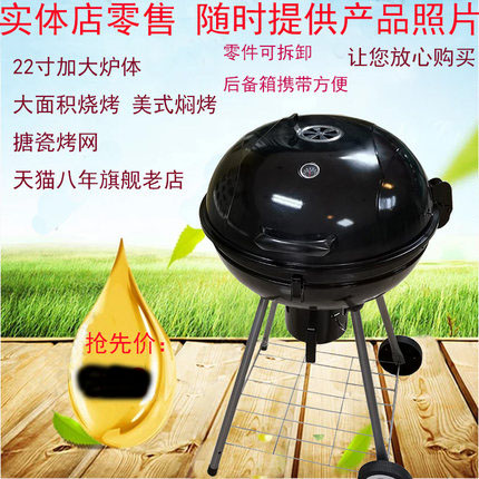 逍客烧烤炉户外家用大号苹果炉庭院木炭野营圆形烧烤架烤肉炉BBQ