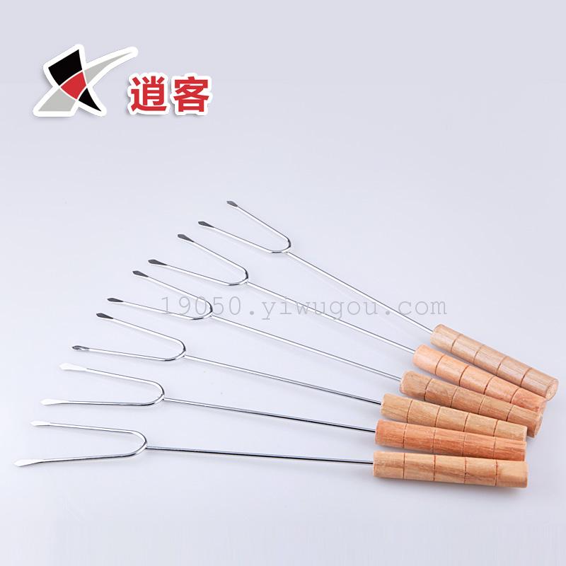 烧烤配件:带木柄烤叉环保烧烤针新品6支安全实用不烫手钎子钢针