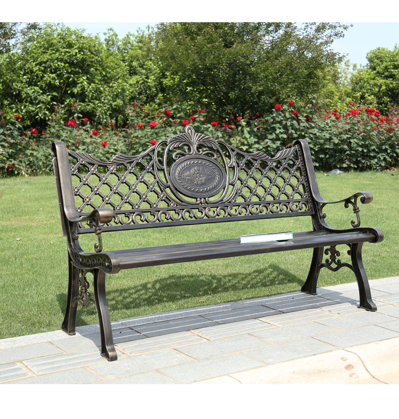 野人谷公园椅户外长椅休闲靠背座椅室外防腐木长条椅子铸铝长凳